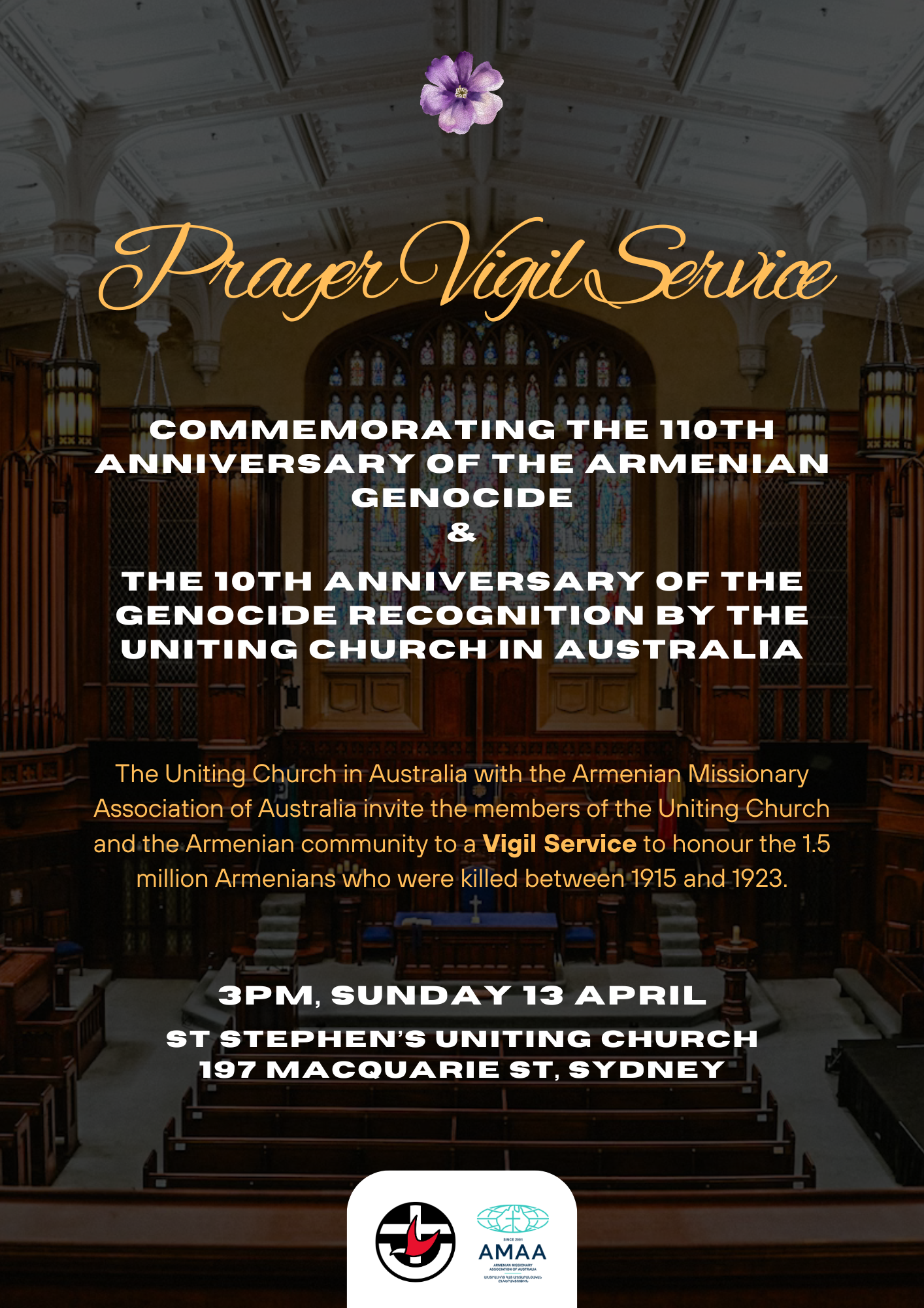 Commemorating the 110th anniversary of the Armenian Genocide and the 10th Anniversary of the recognition by the Uniting Church in Australia.