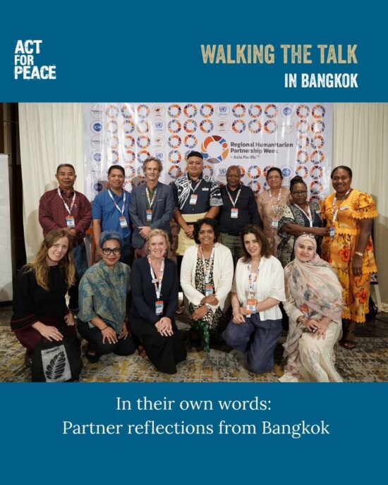 In December 2025, over 500 humanitarian representatives from 38 countries gathered for the Regional Humanitarian Partnership Week in Bangkok. Through the Walking the Talk program, Act for Peace supported eight local partners to attend, learn, and share experiences on the issues that affect their communities